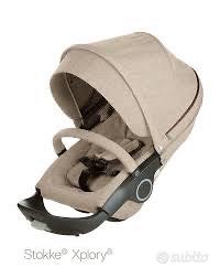 Vendo passeggino trio Stokke usato (culla in ottimo stato, ovetto in ottimo stato e passeggino con qualche segno di usura); anno 2015, colore beige, con accessori (borsa cambio, ombrellino per il sole, cappottina impermeabile parapioggia, porta borraccia). Incluso REGALO sdraietta Brevi Hello Kitty rosa. Ritiro e vendita in loco oppure spedizione ad un prezzo di 20 euro (eventuale prezzo aggiuntivo a carico del venditore) . Prezzo trattabile. Zona Biella e dintorni. Tutto pulito ed in scatole originali.