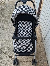Passeggino Brevi (modello leggero e compatto, telaio alluminio bianco/nero) con bellissima fantasia houndstooth (pied de poule) bianco e nero, molto elegante e particolare!Ideale per la città, pesa pochissimo (circa 4 kg o meno), si apre e chiude con una sola mano, molto maneggevole. Condizioni: usato pochissimo, sempre tenuto al coperto, nessun danno strutturale, telaio e ruote perfette, tessuti puliti e senza strappi o macchie evidenti (solo normale usura da utilizzo). Caratteristiche principali: Schienale reclinabile fino a posizione quasi nanna. Cintura di sicurezza a 5 punti. Capote estesa con visiera per protezione sole/vento. Cestello portaoggetti sotto. Pedana poggiapiedi regolabile. Ruote anteriori piroettanti (con blocco per terreni sconnessi). Omologato EN 1888:2012 (etichetta presente e visibile). Età consigliata: dalla nascita (con riduttore se necessario) fino a circa 3 anni / 15 kg. Motivo vendita: bimbo cresciuto, non più utilizzato. #passeggino #ultraleggero #brevi #bambini