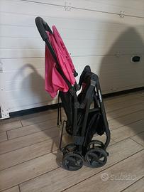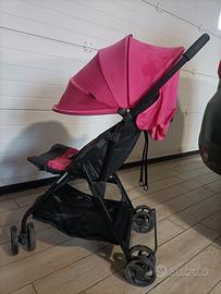 Passeggino ultraleggero Foppapedretti fucsia e nero con parasole, parapioggia e portaoggetti originali. Pratico, maneggevole e leggerissimo