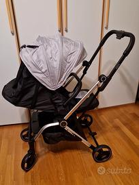 Il telaio completamente ammortizzato e realizzato in alluminio rende il passeggino molto pratico e leggero durante le passeggiate e gli spostamenti veloci.