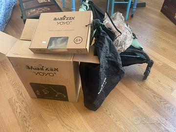 Passeggino yoyo+ baby zen, con scatola originale, ganci portaoggetti, sacca per trasporto aereo e copripioggia (unico pezzo che ha risentito dell’usura perché un ingiallito). Colore peppermint.