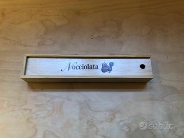 - 1 custodia in legno con 6 pastelli nuovi e 1 temperino
