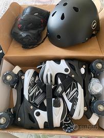 2 confezioni di Pattini 4 ruote rosa e bianchi e neri. Età dai 5 anni in poi, allungabili. Con protezioni complete, in scatola originale. Ritiro a Uboldo (VA) Prezzo a scatola 40€ più protezioni 10€