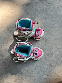 Pattini utilizzati e in condizioni come da foto. La bambina, cadendo, ha rigato le parti laterali e superiori dei pattini