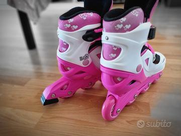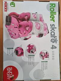 Pattini a 4 ruote regolabili con freno posteriore – taglia 31-35, per offrire sicurezza e comfort mentre si sfreccia – rosa