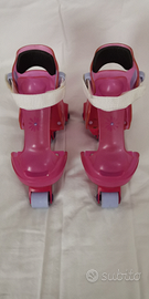 Pattini a 5 rotelle rosa marcati Barbie anni '90 regolabili da usare con scarpe dal n. 20 al n. 28