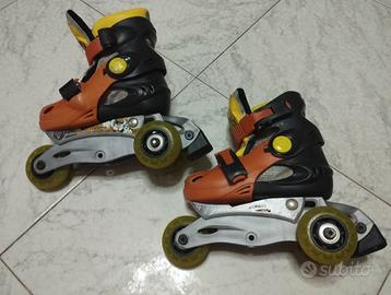 Pattini a rotelle di Gormiti regolabili in lunghezza, misura da 26 -29. Le rotelle di possono mettere in linea o come da foto 2 rotelle posteriori appaiate per la maggior stabilità.
