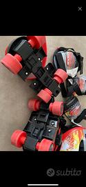 Pattini a rotelle , 3/5 anni. Misura del piede regolabile. Completo di caschetto , para gomiti e ginocchiere, e zainetto porta tutto . Usato pochissimo .