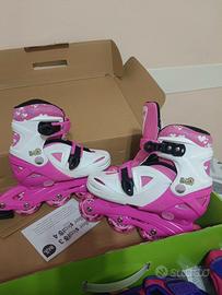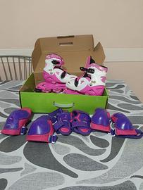 vendo pattini a rotelle per bambini regolabili in lunghezza dal 31 al 35 con accessori ginocchiera para colpì per braccio e paracolpi per mani