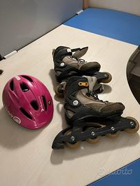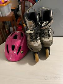Pattini a rotelle con scarponcino molto confortevole misura 36/37 e casco da bimba misura 56/58 tutto molto ben tenuto