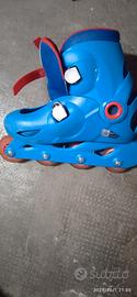 vendo pattini a rotelle x bambini unisex ancora in ottime condizioni ma inutilizzati da tempo leggeri segni di usura sulle punte e sui fianchi ma comunque perfettamente funzionanti x chi fosse interessato all' acquisto si effettual prezzo interessante. numero di piede 34/36
