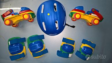 - Completo di protezioni, casco e zainetto per il trasporto