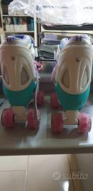 Pattini a rotelle per bambine tg.XS (27-30), regolabili, , con ruote luminose, come nuovi, utilizzati pochissime volte, con sacca originale e chiavini per regolarli.