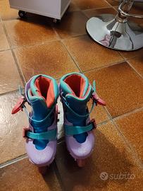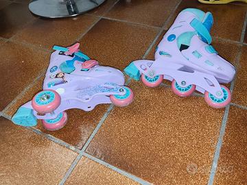 pattini a rotelle da bambina taglia va dal 27 al 30 con due modalità di posizione o in linea o per i principianti 1 ruota davanti e due dietro come foto.