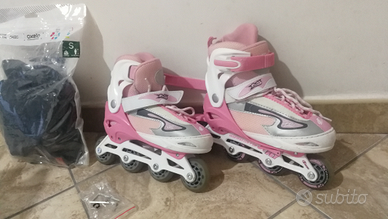 Vendo pattini in linea della editrice giochi. Usati pochissimo, come nuovi, completo di protezioni per ginocchia e gomiti presi da Decathlon ancora sigillati perché mai usati.