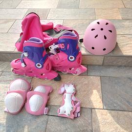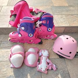 Vendo pattini in linea completi di borsa e protezioni che comprendono : ginocchiere, gomitiere, polsiere e casco. N.B. la misura dei pattini è regolabile dal numero 34 al numero 36.