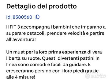 pattini in linea taglia 32 -35