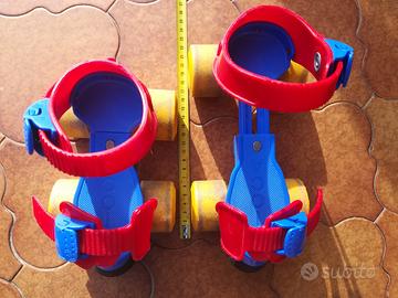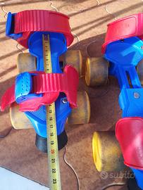 Vendo pattini minijet marca Gioca, usati, in ottime condizioni, telaio in plastica rinforzata, cinghiette con presa rapida e regolazione micrometrica, freno in gomma, ruote con cuscinetti a sfera, ruote 50x30 mm, made in Italy. Lunghezza min. del piede cm. 16,lunghezza max. cm 21