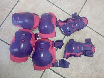 Vendo pattini (35-38, taglia regolabile) per bambini con casco rosa e protezioni (ginocchia, gomiti e mani). Usati una volta. Tutto Decathlon.