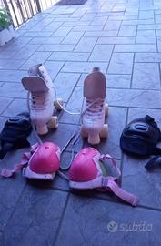 vendo pattini nuovi bianchi e protezioni braccia e gambe..