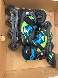 pattini per bambini, misura dalla 29 alla 33 (regolabili), colore blu, verde e nero. 1 freno.