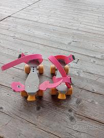 Pattini regolabili a 4 rotelle, provvisti di freno sulla parte anteriore del pattino. Coprono dal numero 23 al numero 30 indicativamente.