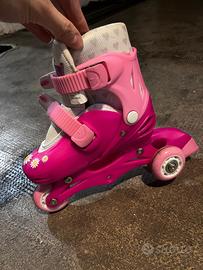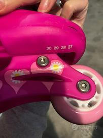 Pattini bambina regolabili 27/30, in linea con possibilità di tenere due ruote dietro o una sola.
