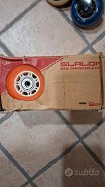 š¹ Ruote da 76mm montate sui pattini (usate) + set ruote NUOVE Gyro Slalom 76mm 85A, perfette per slalom, percorsi tecnici e controllo.