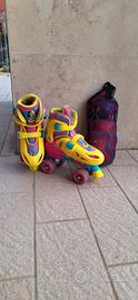 Misura regolabile da n.31 a n.34 con tasto, molto carini e comodi, completi di protezioni mani, gomiti e ginocchia.