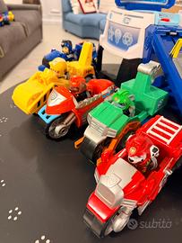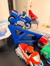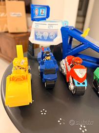 Vendo pista moto pups e 5 veicoli con personaggi come da foto. Meccanismo di lancio delle moto pups funziona perfettamente. Pista in ottime condizioni come anche i singoli veicoli e personaggi. Qual he personaggio originale l ‘ho sistituito con un altro causa smarrimento.