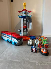 Torre, camion, mezzi trasporto e personaggi come da foto. Mezzi trasporto e personaggi in ottime condizioni. Torre e camion con segni di usura. Vendibili anche separatamente.