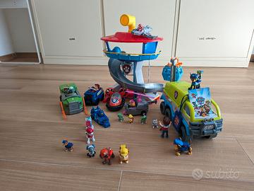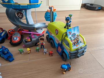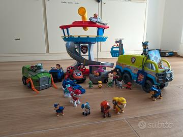 Torre mezzi e personaggi dei paw patrol, tutto quello che vedete in foto riceverete. mezzi più grandi con suoni (completi di batterie). tutti in ottimo stato e puliti