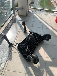 Pedana porta bambino semi universale. Si chiude col passeggino, 3 ruote per maggiore stabilità. Praticità di montaggio e smontaggio granzie al sistema di aggancio "easy hooking". È dotata di base antiscivolo e di sospensioni sulle ruore per garantire la massima sicurezza. Distanza dal passeggino regolabile.