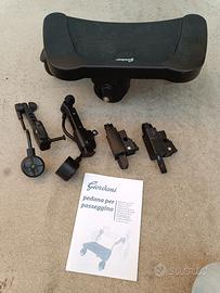 Praticità di montaggio e smontaggio grazie al sistema di aggancio “easy hooking”. È dotata di base antiscivolo e di sospensioni sulle ruote per garantire la massima sicurezza.