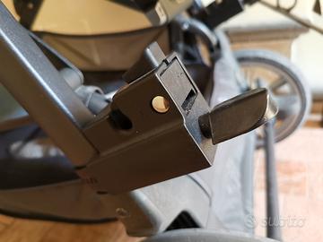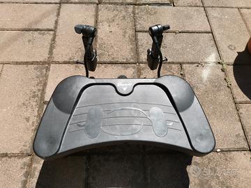Pedana universale da agganciare al passeggino (lato manubrio) per poter stare in piedi. Completo di attacchi. Usato 2 max 3 volte, mostra alcuni piccoli segni di utilizzo anche a causa del materiale (plastica). Marca Giordani.