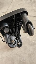 Praticità di montaggio e smontaggio grazie al sistema di aggancio “easy hooking”. È dotata di base antiscivolo e di sospensioni sulle ruote per garantire la massima sicurezza.