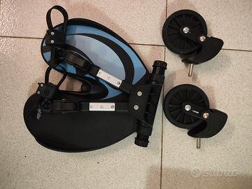 Pedana porta bambino mai usata. Ancora nel suo imballo originale completa di due ruote di scorta e istruzioni per l'uso.