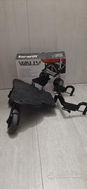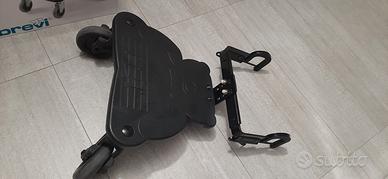 Adatta per bambini a partire dai 15 mesi e con peso inferiore ai 20 kg. Si applica a passeggini e carrozzine dotati di asse, traversa o tubo rigido posteriore con diametro massimo di 45 cm. Dotato di 3 copie di adattatori per l’aggancio a telai e la struttura della pedana può essere regolata in altezza e in larghezza per adattarsi alle dimensioni del telaio del passeggino, garantendo la massima sicurezza nel trasporto.La base d’appoggio della pedana è a 16 cm dal suolo.