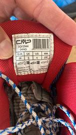 Pedule da montagna marca CMP resistenti all’acqua, numero 36, unisex, usate ma ancora in buono stato, suola nuova.