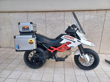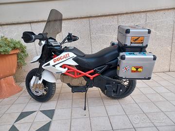 Vendo Peg-Perego modello DUCATI HYPERCROSS. Agile e scattante, ricca di dettagli; moto elettrica a 12V per bambini dai 3 anni in su che sfreccia a quasi 8 km/h e regala fantastiche avventure anche su terreni disconnessi. 3 bauletti di serie e la borsetta degli attrezzi regalano un look avventuroso. Ruote con battistrada in gomma per una migliore tenuta. Freno a pedale. Ruote stabilizzatori removibili. Batteria e caricabatteria. 2 velocità: può raggiungere 3,8 km/h impostata sulla prima velocità e 7,8 km/h sulla seconda. La velocità più alta può essere impostata solo da un adulto. La moto così come si vede dalle foto è perfetta in tutto, compresa la batteria!!! VENDO € 250! RITIRO IN SEDE...NO SPEDIZIONI!!! CHIAMARE ORE PASTI: 3394123898 Cristian.