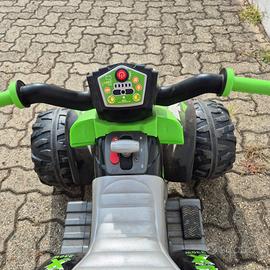 Grintoso quad elettrico per bambini con luci e suoni. Corral T-Rex 330W è l’iconico quad Peg Perego sempre pronto per nuove avventure. Qualità made in Italy e caratteristiche performanti come luci, suoni, melodie e clacson per divertirsi già dai 3 anni. Il quad elettrico funziona con una batteria ricaricabile da 12 V - 8 Ah.