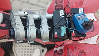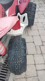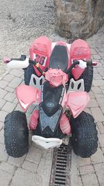 Vendo Peg Perego Quad Polaris Outlaw potenziato a 24V, accensione con chiave e acceleratore con manopola. Le 2 batterie 12V da montare in serie sono nuovissime: acquistate per verificare che il quad fosse ancora perfettamente funzionante. Ruote Gommate e 3 Motoriduttori di ricambio + caricabatterie. Solo consegna a mano.