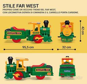Trenino elettrico stile Far West per bambini dai 2 anni in su.