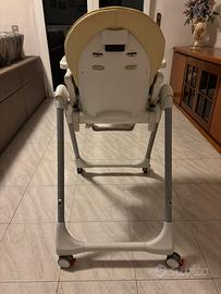Il seggiolone Prima Pappa Follow Me è dotato di seduta regolabile in 7 posizioni; schienale reclinabile come una sdraietta; pedanetta poggiapiedi regolabile; rivestimento in morbida ecopelle; cinture di sicurezza a 5 punti; doppio vassoio removibile con porta bicchiere e 4 ruote (con freno) per muoverlo con facilità.