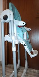 Seggiolino con schienale e pedanetta poggiapiedi regolabili, adatto per i neonati grazie all’accogliente seduta, completo di doppio vassoio e anatomico spartigambe