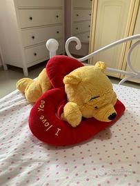 Peluche a forma di Winnie the Pooh sopra un cuore