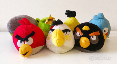 7 Peluche Angry Birds. Tutti con etichetta bianca come in foto, tranne quello rosso. ( probabilmente staccata). Quello verde ancora anche con etichetta sul davanti. Sono un po datati e con segni di usura.