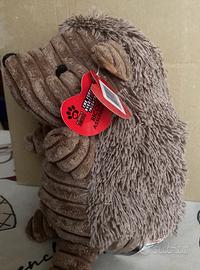 ARISTIDE il riccio assonnato della serie Fortunelli Alimenta Amore, tenero e morbido peluche in ciniglia dal design a coste. Marrone con pelo marrone screziato, occhi e naso nero, completamente lavabile. Nuovo, mai esposto e con cartellino.