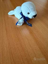 Peluche bianco del marchio Baci & Abbracci, morbido e coccoloso. - Colore bianco. - Fiocco blu con logo. - Materiale morbido.