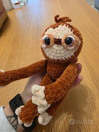 Dolce peluche bradipo, realizzato interamente a mano all'uncinetto.
